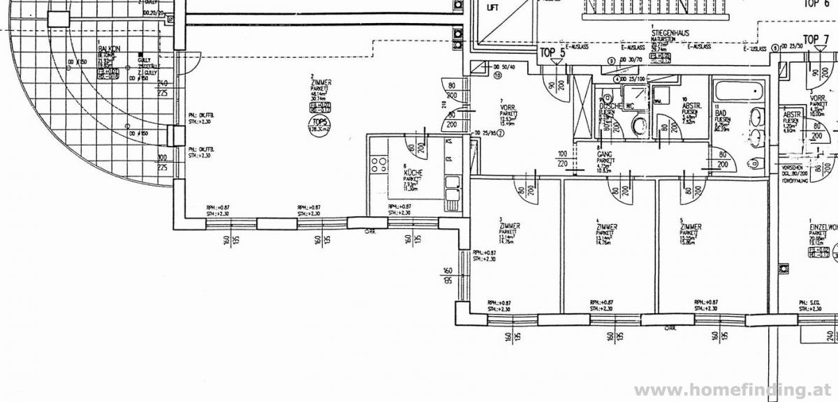 ca. 48m² südseitiges Wohn-Esszimmer mit ca. 20m² Balkon separate Küche mit Fenster